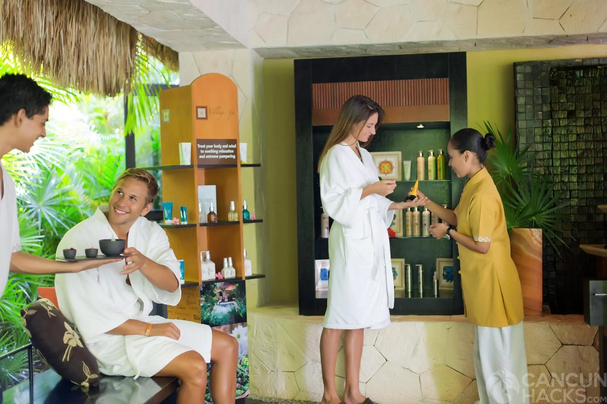 The Village Spa is designed to evoke the essence of an ancient Mayan village. Each treatment cabin, known as a Tikale, symbolizes one of the natural elements central to Mayan culture. With its serene beauty and thoughtful architecture, the spa creates an oasis for relaxation amidst the vibrant energy of Cancun.